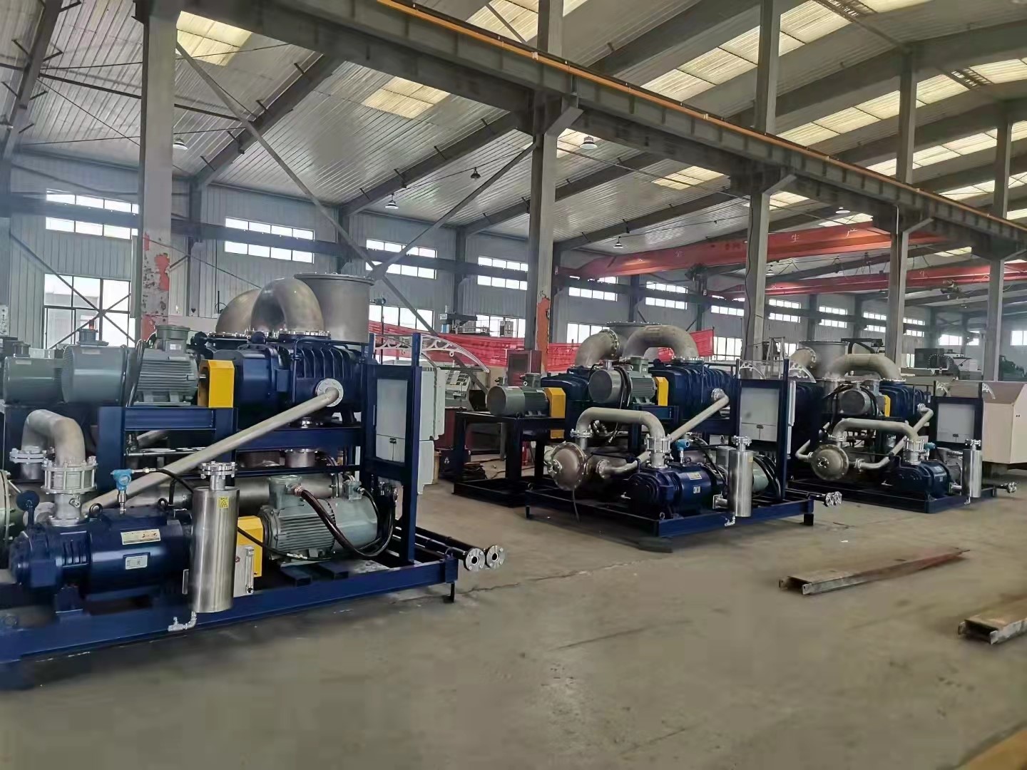 采用螺桿真空泵為前級(jí)泵,二級(jí)泵為氣冷型羅茨真空泵,主泵為普通型羅茨真空泵撬裝組成,機(jī)組整體抽氣速率達(dá)13500m³/h,真空度可達(dá)0.1Pa,適用于大抽速高真空工藝。